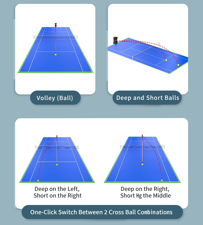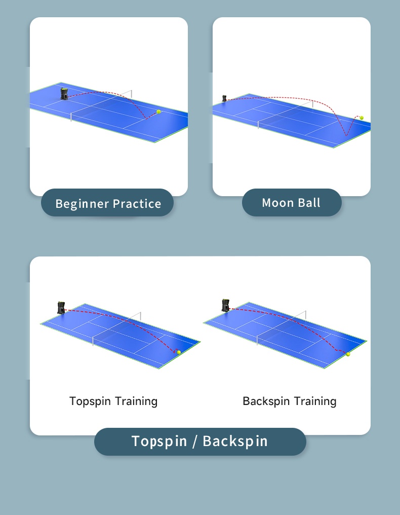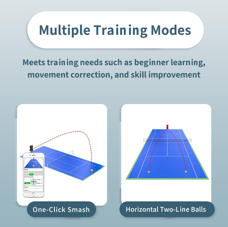 A: It covers fixed, cross, topspin, backspin, random, lob and multi-combination serve modes for full-court training.