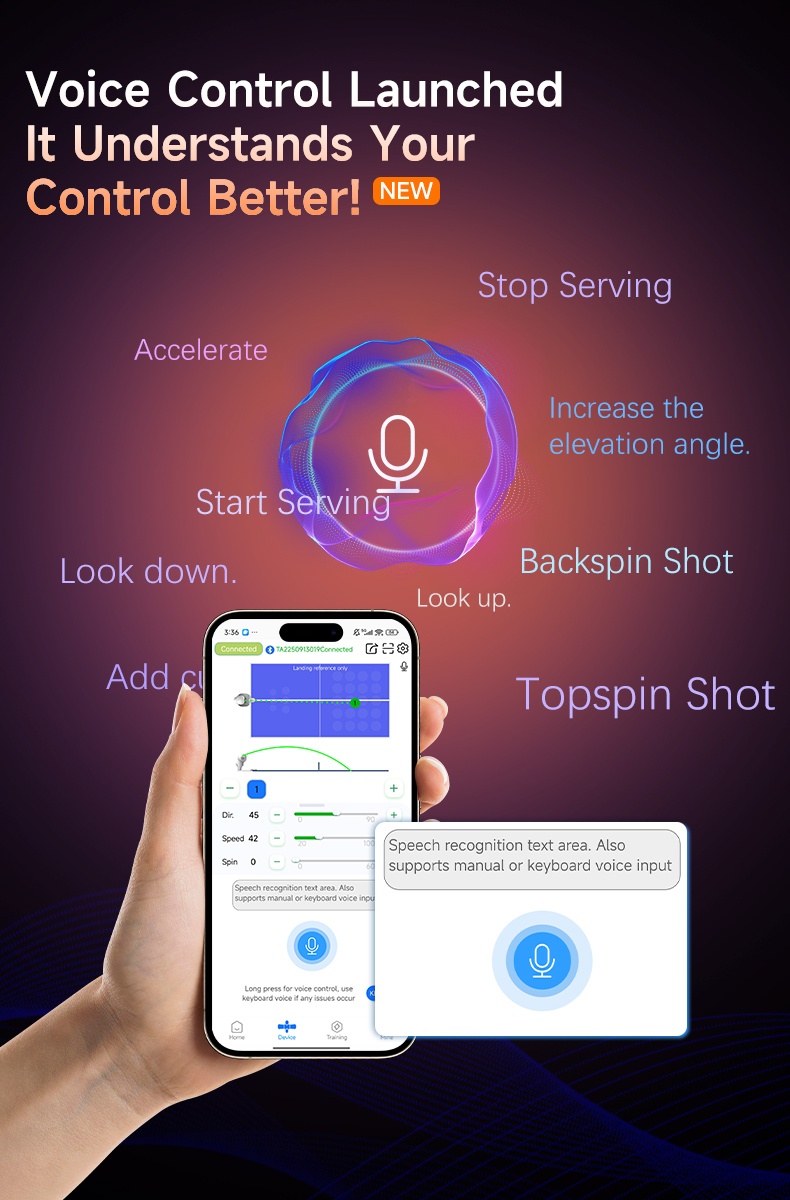 A: It has ±30° adjustable range for both horizontal and vertical serving angles for diversified ball trajectory training.